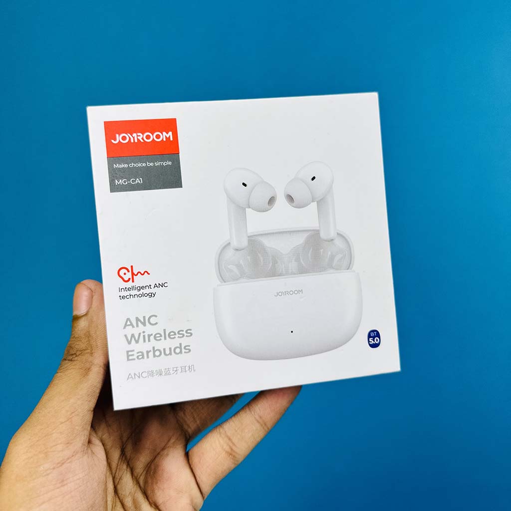 The Joyroom MG-CA1 is an active noise-canceling (ANC) earphone that offers a comfortable and immersive listening experience. It features a sleek and stylish design, and it is made of high-quality materials. The earphones have a battery life of up to 5 hours, and the charging case provides an additional 20 hours of battery life, giving you a total battery life of up to 25 hours.
