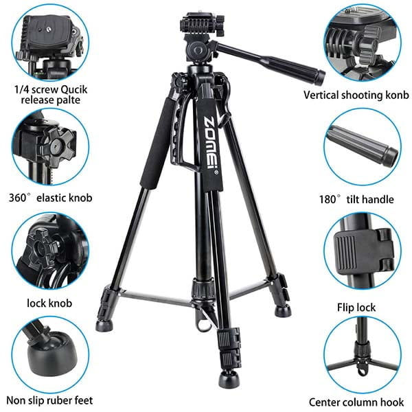 Zomei T120 Tripod is made with Smartphone and DSLR camera in mind. This Tripod made with very high quality and long durable material. You will find all the features and functions on this budget-friendly Tripod which often available on high-end tripods. Zomei T120 Tripod is best affordable and comes with ready to go for taking shoot or to Go live on Facebook or other social platforms.